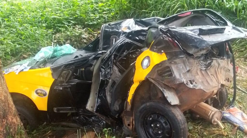 An eyewitness, Mr Yaw Frimpong told the Ghana News Agency that it had rained earlier, and the driver lost control of the steering, causing the vehicle to slam into a tree and all four occupants were pronounced dead at the scene.
