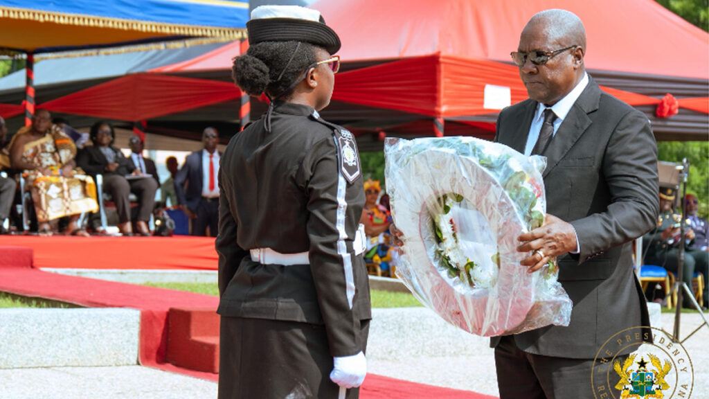 President John Dramani Mahama has joined the Police to observe the 2025 Police Memorial Day with a wreath laying at the Cenotaph at the Police Training School, Tesano, Accra.