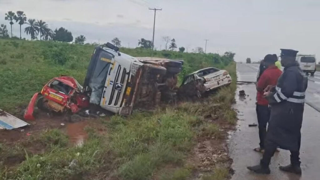 The crash, which occurred around 10:00 a.m. during a heavy downpour, involved a Kia Picanto taxi (GS 3644-19), a Toyota Corolla saloon car (GT 4164-20), and a tipper truck (GS 1139-25), all travelling towards Kumasi.